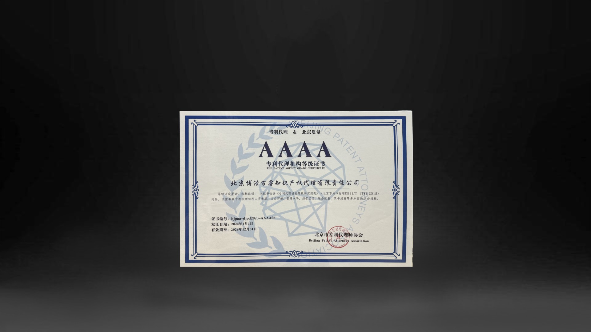 Grade 4A of patent agency (awarded by Beijing Patent Agents Association)
